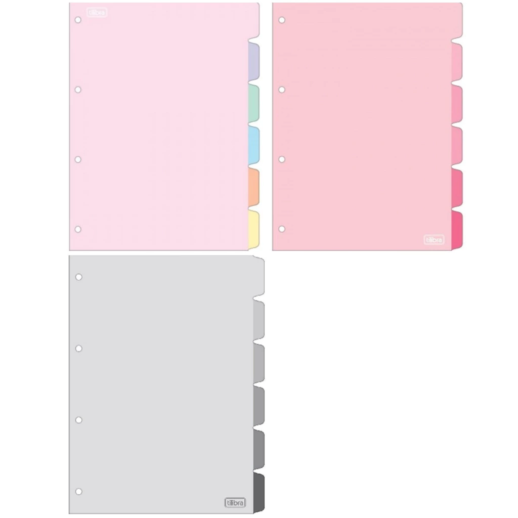 São 6 divisórias diferentes, ideais para a organização e separação de matérias nos cadernos argolados. As Divisórias possuem impressão, formando um efeito degradê.
